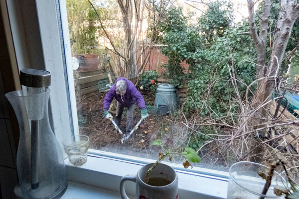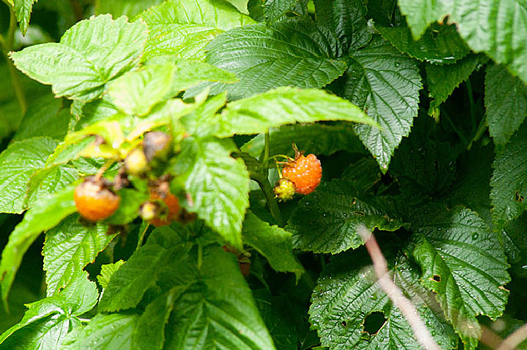 Maar als ik de braam er met de haren heb bijgesleept, mag de framboos (Rubus idaeus) niet overgeslagen worden! Ook een vrucht waar ik verzot op ben. Ik heb ze in de tuin, zowel rode als gele. Ze zijn begin februari tot de grond toe teruggesnoeid, maar volgend jaar zijn ze wsl weer net zo hoog! Bramen en frambozen zijn nauw verwant. Als ze geen vrucht dragen zijn ze toch gemakkelijk te onderscheiden. Frambozen hebben bladeren met een witte onderzijde, die van de braam zijn groen! Van frambozen bestaan twee vormen: met rode vruchten en met oranje (gele) vruchten. De oranje vruchten zijn heel zacht van smaak, heel anders dan die van de rode. In de tuin naast de binnenplaats van mijn middelbare school stond een gele framboos. Heerlijk. Ik had mijn medegebruikers van die tuin wijsgemaakt, dat de gele frambozen niet eetbaar waren. Zo had ik de hele struik voor mezelf! Frambozen zijn erg kwetsbaar, vandaar dat ze in de handel met zorg gehanteerd moeten worden. Iets dat de prijs hoog maakt! Maar teelt in je eigen tuin is ongelooflijk makkelijk. Ook frambozen gebruikte ik voor het maken van jam, maar alleen van de rode. De gele frambozen kregen de tijd niet om een voorraad te vormen, dan had ik ze al opgegeten. Vorige week zijn alle struiken in mijn tuin tot aan de grond teruggesnoeid. Ik ben benieuwd hoe ze nu gaan uitlopen.