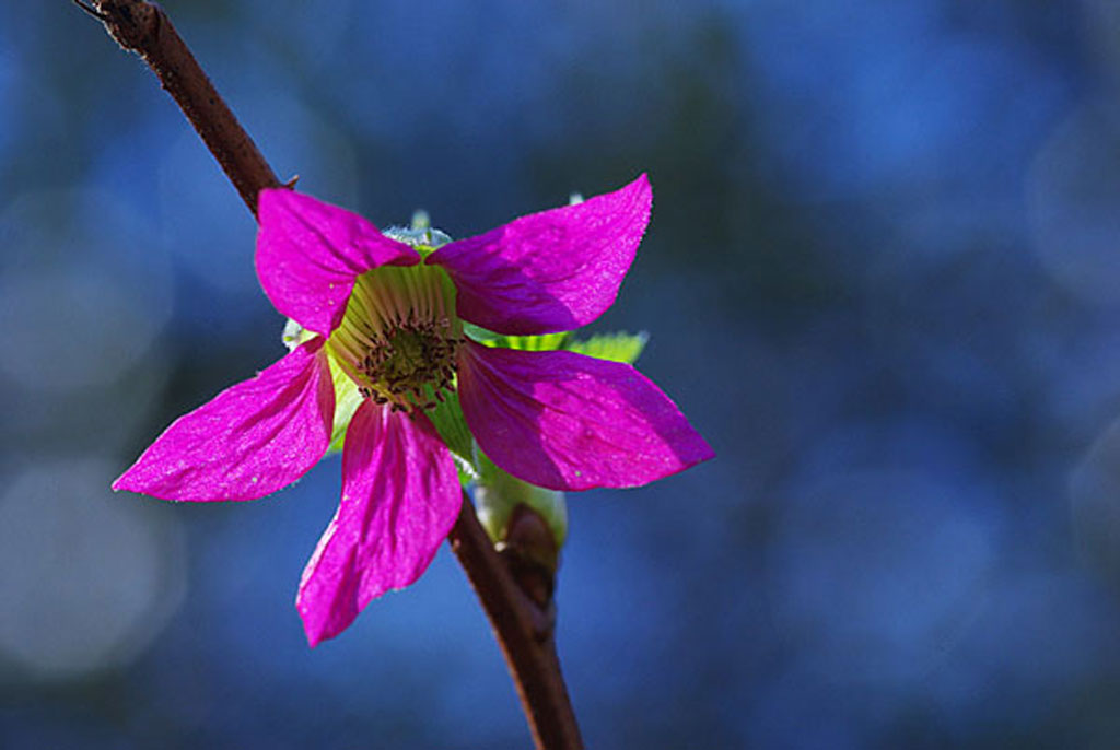 In de landgoederen van de binnenduinen is een schitterende sierframboos, de prachtframboos, ingeburgerd. Ik heb er ooit een zaadje van in mijn tuin laten vallen, dat waarschijnlijk in mijn jas of trui zat. In het begin vond ik dat wel leuk, de bloemen zijn ongelooflijk mooi. Maar helaas, die had bijna de hele tuin overgenomen en is dus nu ook rigoureus teruggesnoeid. En die knip ik gelijk weg als hij straks uitloopt. Hij is heel erg makkelijk te herkennen, ook als hij niet bloeit! Hij is ongelooflijk sterk gestekeld!
