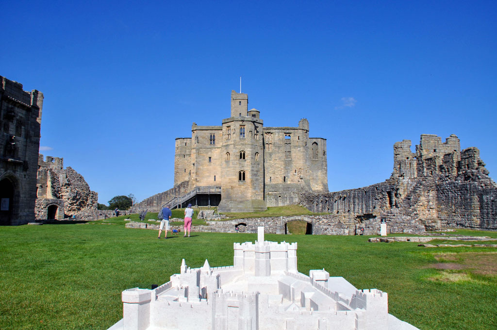Nu weer naar Amble, dat op ongeveer 35 minuten rijden vanaf de ferryhaven ligt. Amble is zowat de poort naar de Northumbria Coast, gelegen bij de Coquet-rivier en met zicht op een eiland met dezelfde naam als de rivier. Het pittoreske haventje heeft wat bedrijvigheid en een waterkant met leuke winkeltjes en eetgelegenheden, meestal in oude vissershutten. The Old Bakehouse heeft meerdere Engelse cakes op het menu. Bij Northumberland Seafood and Hatchery kan je ook een kijkje achter de schermen nemen. Vanaf de haven heb je al een mooi zicht op een der vele kastelen die deze kust rijk is en die we jullie zullen voorschotelen. Warkworth Castle was ooit in handen van de Percy-familie, die de graven en hertogen van Northumberland voortbracht. Percy, een naam die we nog enkele keren zullen tegenkomen. De bekendste bewoner van Warkworth was Henry Percy, alias Harry Hotspur, een nogal hevige vechtersbaas uit de 14de eeuw. Shakespeare trouwens gebruikte Warkworth en Henry in zijn King Henry IV-verhaal. Het kasteel is nu in handen van English Heritage en is meer dan een ruïne. De Great Tower is nog goed bewaard gebleven en is het sierlijkste wanneer je hem bekijkt vanaf de witte maquette die je tegenkomt bij de ingang. Het is een meesterstuk van middeleeuwse bouwstijl, juist zoals de Lion Tower met een spectaculaire heraldiek van de Percy-familie.