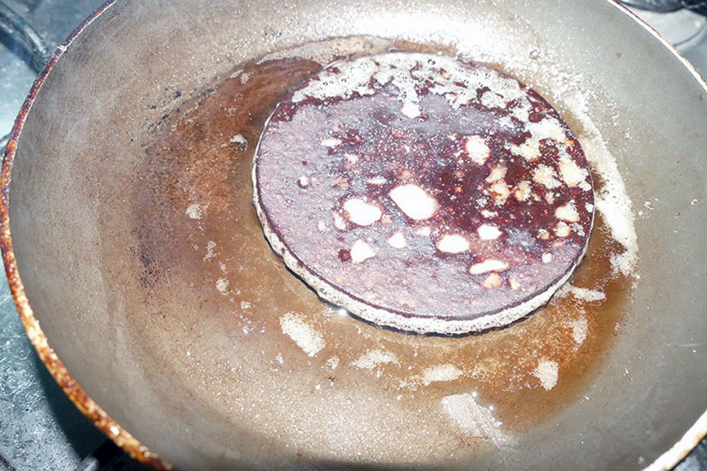 Maar goed. Wij aten bloedworst meestal op donderdag, met rodekool en uiteraard gekookte aardappelen. Het bakken deden mijn oudste broer Frits en ik om toerbeurt. Je moest erbij blijven want de worst bakte vrij snel aan. Een hard korstje, dat vond ik niet erg, maar andere broers en zusjes waren daar minder op gesteld. En ook niet iedereen bij ons thuis vond het even lekker, ik denk dat ik een grote uitzondering was (en nog steeds ben).