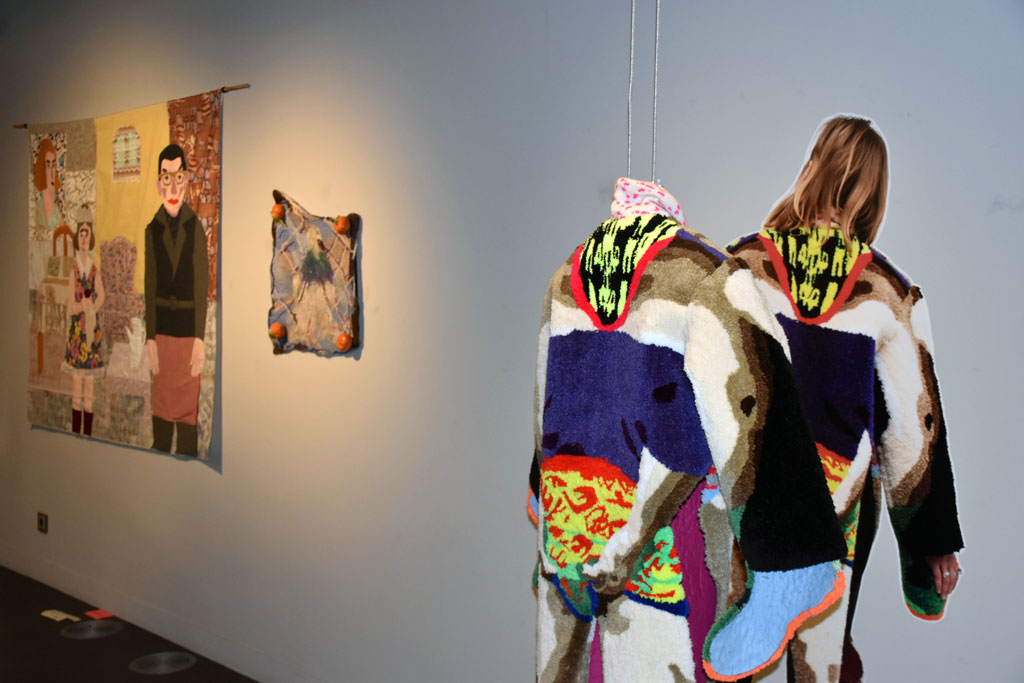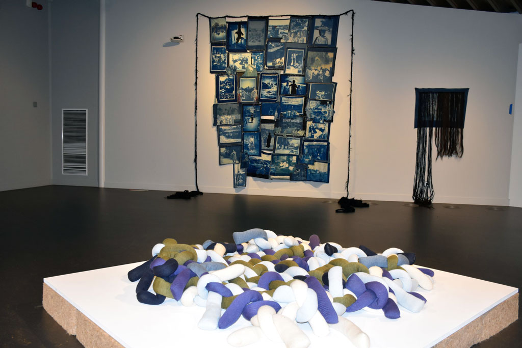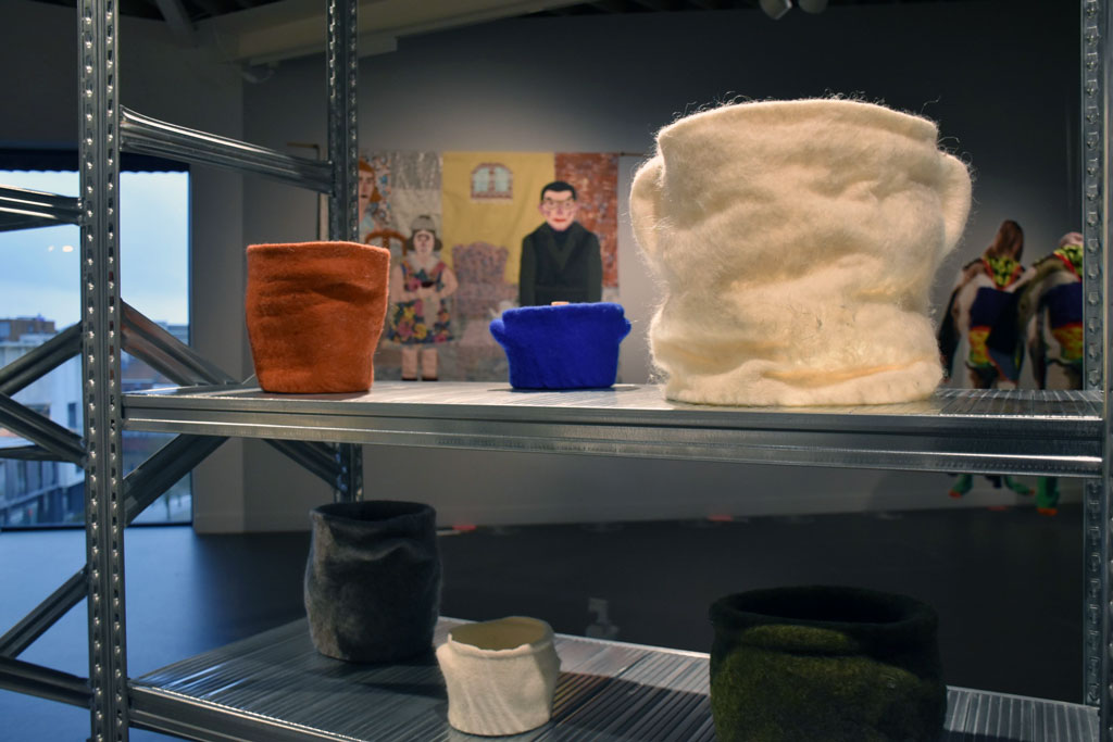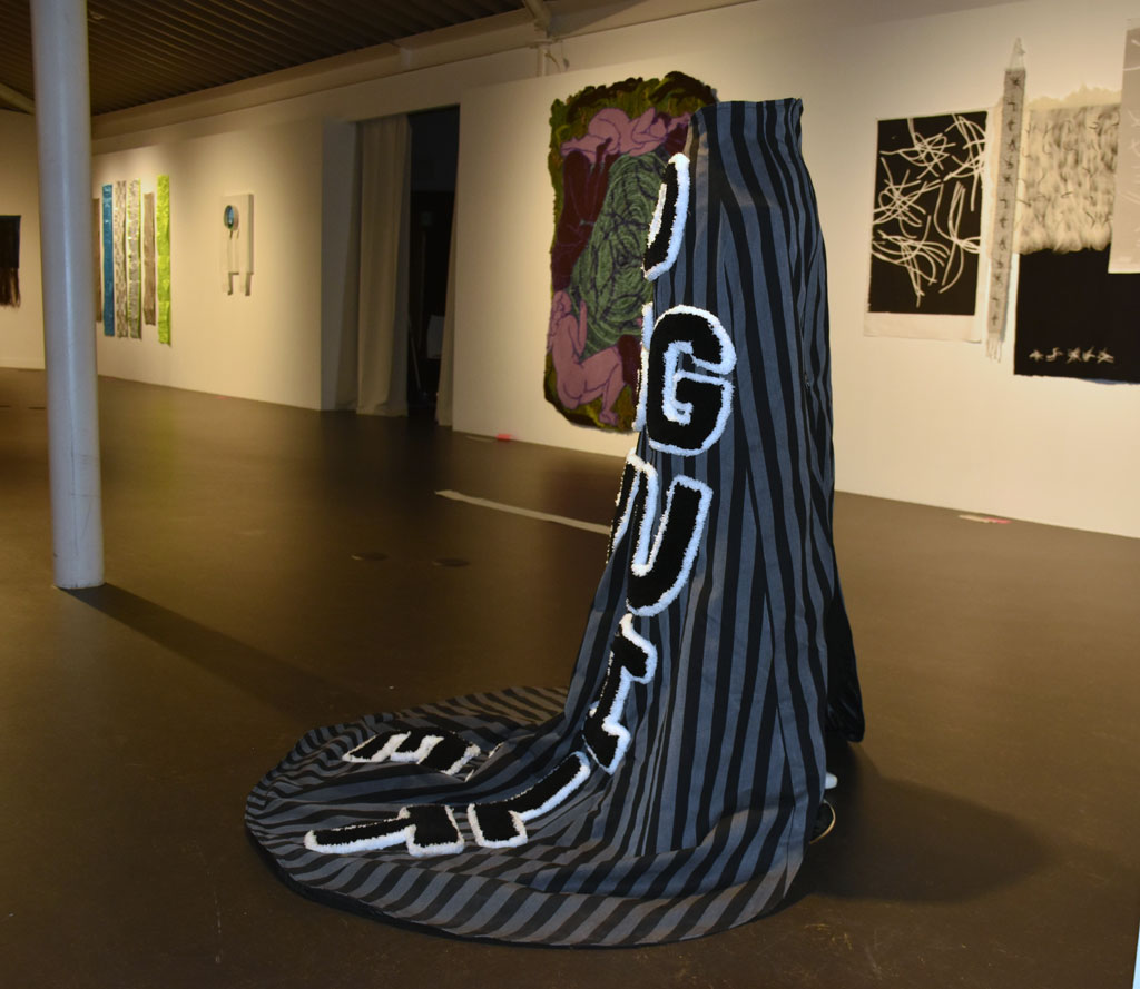 Dat betekent ook ‘Kill your Darlings’. Maar het levert wel een eclectische expositie op vol diversiteit. Denk aan tuft, fotowerk, drie dimensionele creaties, verlijmd fineer op katoen enz. We noemen het de viering van de creatieve vrijheid van textiel. Alle facetten komen hier samen en al lijkt het misschien wat willekeurig toch zit er meer achter. Denk aan politieke standpunten, diepe emoties, maar net zo goed textiel als huisgevoel.”