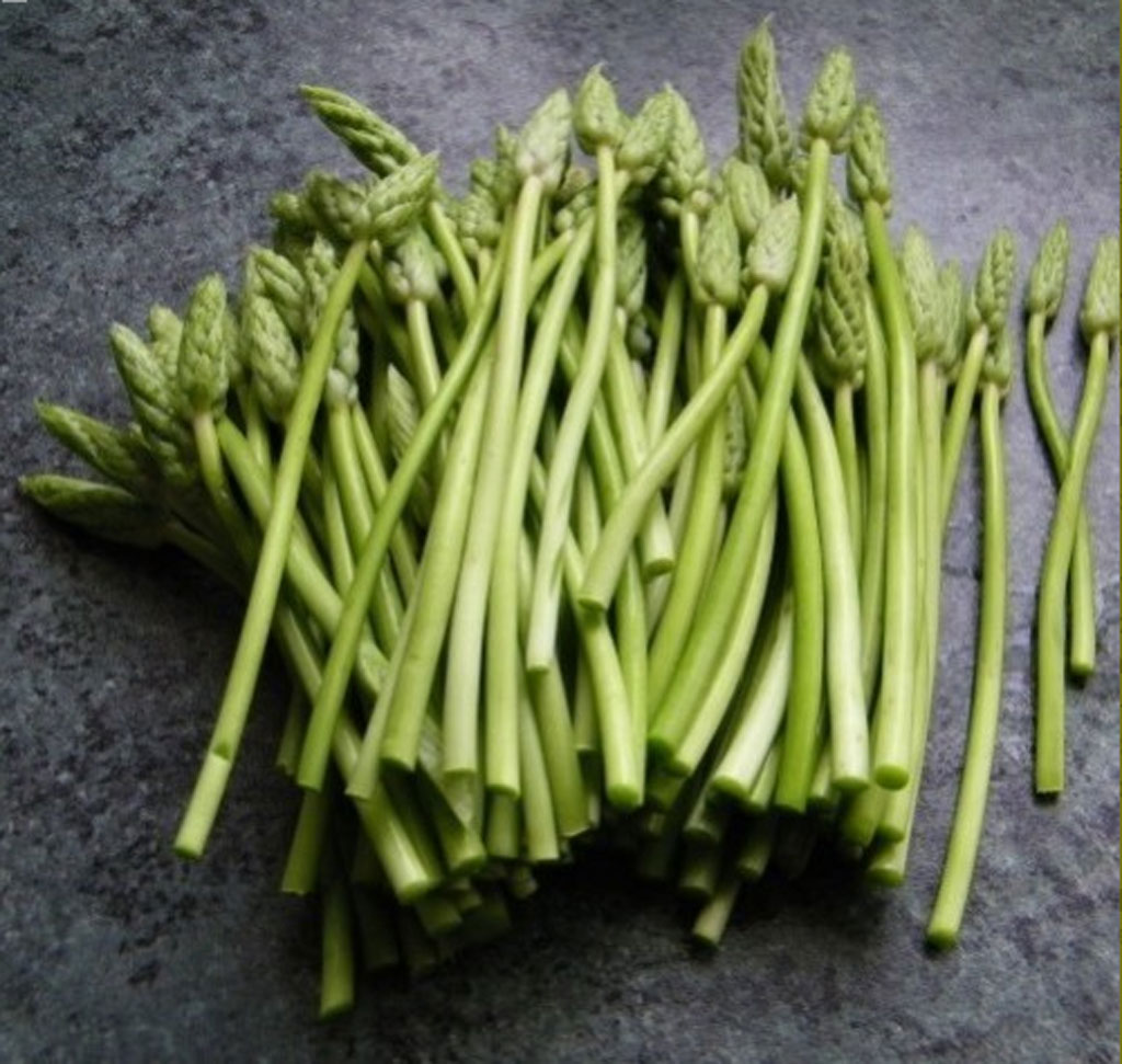 De speciale paddenstoelenkraam op de markt in Leiden heeft in het seizoen ook asperges. Een paar jaar geleden had ze ‘wilde asperges’. Ik zag al meteen dat dat geen asperges waren. Het bleek een vogelmelk-soort te zijn, Ornithogalum pyrenaicum. (foto)     Heel lekker, dat wel, maar zeker geen asperges. Ook al behoren ze biologisch tot dezelfde familie.