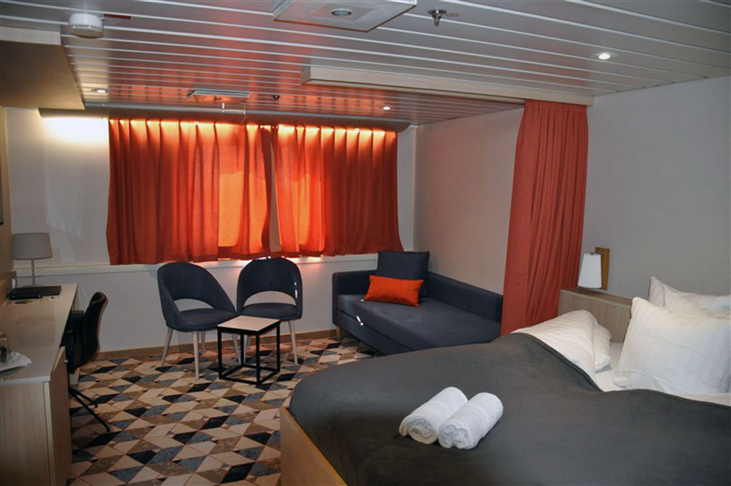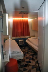 De binnen- en buiten cabines ogen nu mooi met een warm hout rond het beddencompartiment, een vernieuwde badkamer en aangepaste elektriciteit met led lampen en voorzieningen voor laadapparatuur. Een kleurrijke vloerbedekking zorgt voor een extra pigment. Men dacht nu ook aan reizigers met huisdieren: de zogenaamde Petcabins, er zijn er zes, voldoen aan het verblijf van je lievelingshond. De speciale vinylvloer is hier voor aangelegd. De huisdieren hebben wel geen toegang tot de openbare ruimtes.