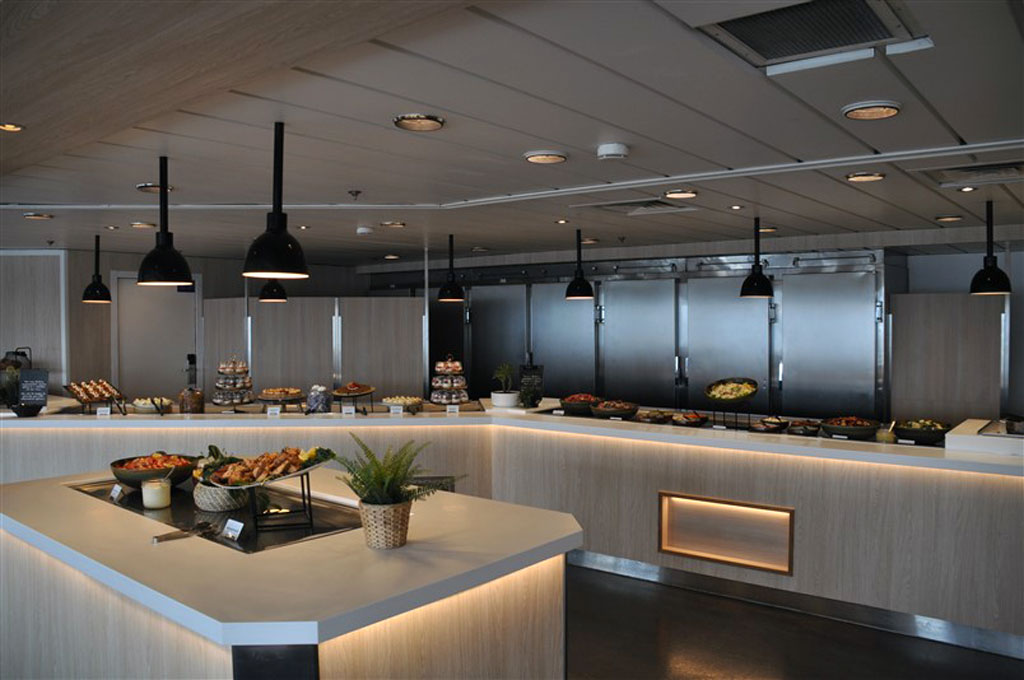 Ook het populaire self service restaurant werd aangepakt. Lichter hout en een langere service ruimte maken het geheel nog aangenamer. En de batterij aan koks zorgen hier nog steeds voor een variatie aan lekkere gerechten van voorgerecht tot dessert. Ook de koffiebar werd verlengd om de reizigers die ’s morgens geen ontbijt nemen de gelegenheid te geven voor nog een vlugge koffie. Dit gedeelte is in partnership met Starbucks.