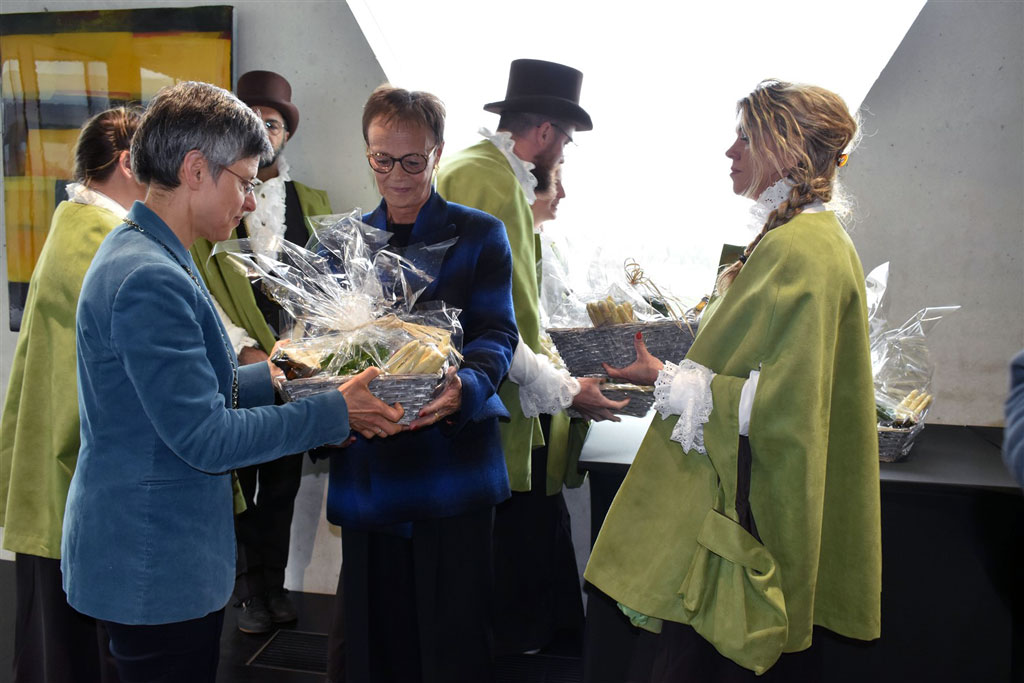 Het aanbieden van de eerste aardbeien door het Genootschap uit Hoogstraten aan de gouverneur en de Antwerpse deputatie is reeds lang een traditie. Sinds 1993 hebben ook de grootmeesters van het Grafelijk Genootschap van de Klein-Brabantse Asperges hun traditie om dit witte goud uit volle grond aan te bieden aan de gouverneur en deputatie. Provinciegouverneur Cathy Berx is zelfs ridder in het Grafelijk Genootschap. Op donderdag 25 april kreeg zij de eer om de nieuwe oogst te proeven.
