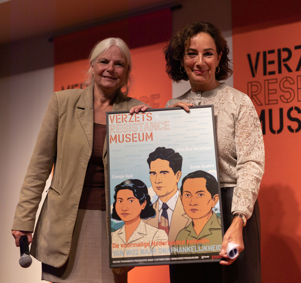 Woensdag 2 oktober 2024 opende burgemeester Femke Halsema de tentoonstelling De voormalige Nederlandse koloniën: van Tweede Wereldoorlog naar onafhankelijkheid in Verzetsmuseum Amsterdam. Na de succesvolle heropening van het museum eind 2022, werd nu ook deze nieuwe vaste tentoonstelling over de gebeurtenissen in de toenmalige koloniën geopend. Enkele daarin geportretteerde ooggetuigen en hun nabestaanden waren bij de opening aanwezig, zoals Lisa Tan die een aanval van Indonesische pemuda’s overleefde, Anne Ruth Wertheim die in 1944 van een Japans interneringkamp, naar een kamp speciaal voor Joden werd verplaatst en kinderen van de Molukse Coosje Ayal die vocht tegen de Japanse bezetter. De tentoonstelling vertelt 32 persoonlijke verhalen over de Tweede Wereldoorlog en de dekolonisatie en gaat in een epiloog in op de doorwerking daarvan in de huidige samenleving. “Door ons te verdiepen in de geschiedenis en open te staan voor elkaars verhalen, leren we elkaar beter kennen. Zo kunnen we doordrongen raken van de manier waarop pijn die door gebeurtenissen vroeger is ontstaan, kan doorwerken”, aldus burgemeester Femke Halsema. De voormalige Nederlandse koloniën: van Tweede Wereldoorlog naar onafhankelijkheid is vanaf donderdag 3 oktober voor het publiek te bezoeken.