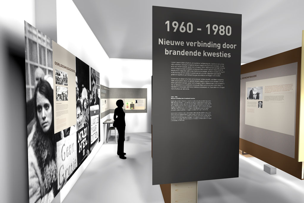 Het bijzondere tentoonstellingsontwerp van bureau Moxie Design plaatst de geschiedenis van Stichting 1940-1945 in de sfeer van de tijd. De bezoeker werpt – letterlijk en figuurlijk – door vensters een blik op verschillende fases van het 80-jarige bestaan. Op die manier vertelt de tentoonstelling niet alleen het verhaal van een maatschappelijke organisatie, maar geeft het ook een, even herkenbaar als verrassend, beeld van naoorlogs Nederland.