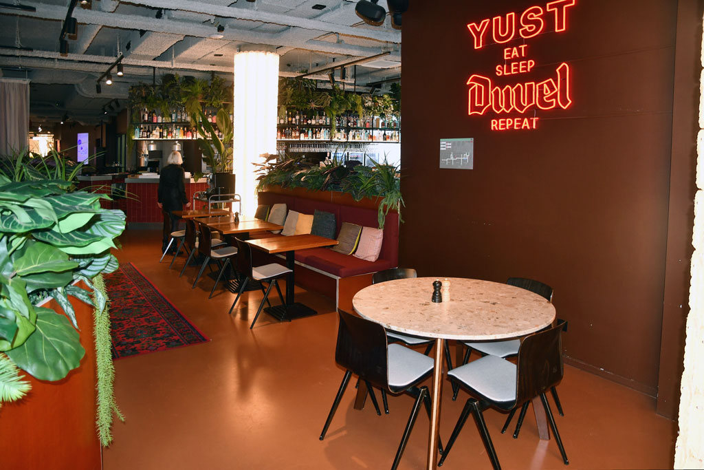 Als een op en top hedendaags hotel streeft Yust een maximale milieubewustheid na. Als houder van een Green key certificaat putten ze energie uit zonnepanelen en geven ze zoveel mogelijk de voorkeur aan een zogenaamde korte keten door te werken met lokale leveranciers. Zo kan je er lokaal gebrouwen bieren en kombuchas, een soort gefermenteerde, licht bruisende thee die erg goed is voor je darmen en je immuunsysteem, proeven.