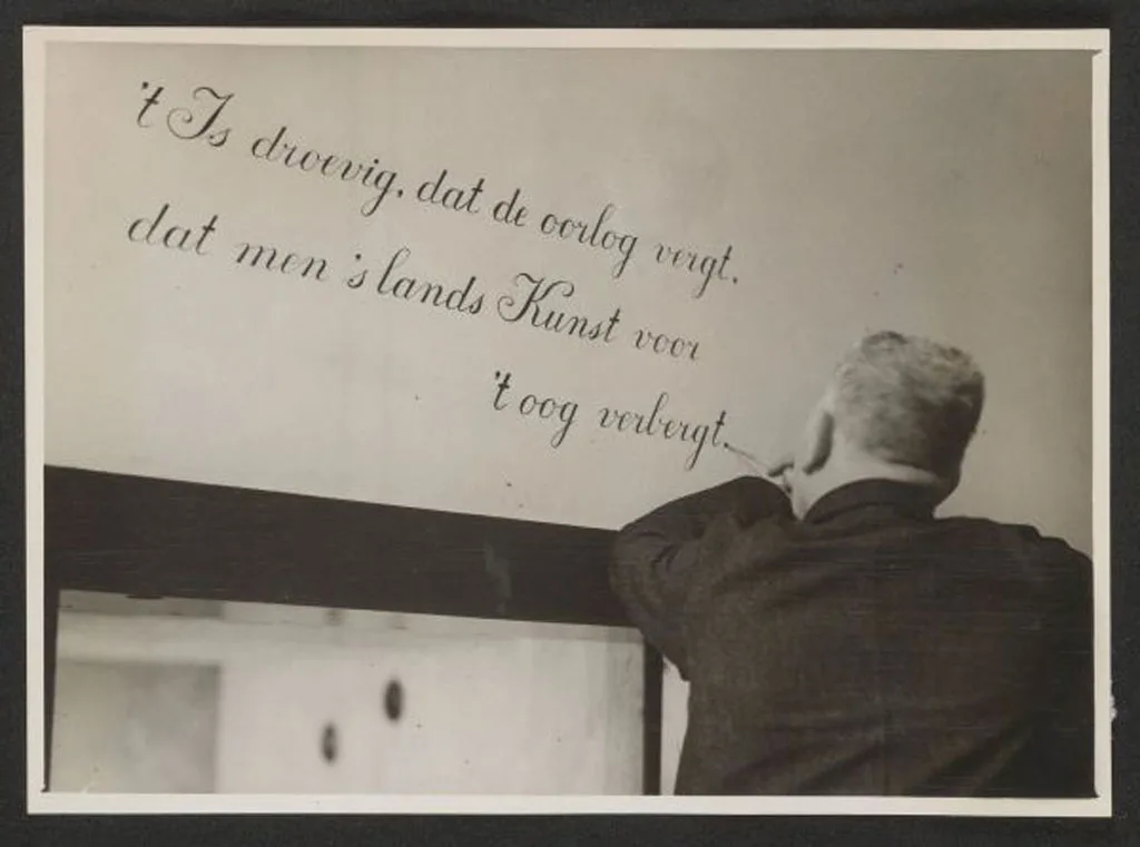 Het Mauritshuis sloot zijn deuren op 25 augustus 1939 vanwege de oorlogsdreiging en heropende weer op 6 juni 1940. Alleen een klein aantal schilderijen was te zien. Directeur Martin realiseerde zich al in de jaren ’30 dat ‘zijn’ collectie in tijden van oorlog buitengewoon kwetsbaar zou zijn en deed alle denkbare moeite om die collectie veilig de oorlog door te loodsen. In de tentoonstelling is o.a. een filmpje te zien over de reizen die Vermeers Meisje met de parel tijdens de oorlog maakte. Het Mauritshuis beschikte over een bomvrije ‘kunstkluis’. Daar waren ’s nachts alle topstukken opgeslagen, overdag werden enkele naar boven gebracht, zoals het Meisje. Boven de ingang liet Martin een tekst aanbrengen: ’t Is droevig, dat de oorlog vergt, dat men ’s lands Kunst voor ’t oog verbergt. In de loop van de oorlog reisden de belangrijkste kunstwerken naar de verschillende ‘Rijksbergplaatsen’. Daar bleven ze tot het einde van de oorlog. In die periode boden de muren van het Mauritshuis een troosteloze aanblik: zalen met lege lijsten.
