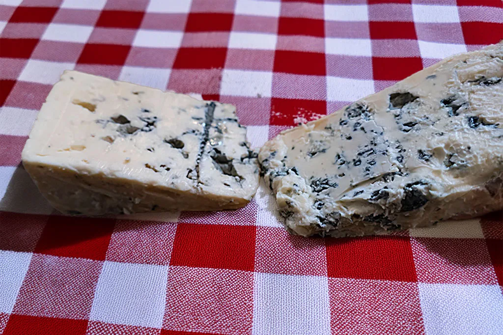 Penicilline is ontdekt door de Schot Alexander Fleming. Fleming was een microbioloog die onderzoek deed aan bacteriën. Op een goeie dag merkte hij dat zijn kweken waren geïnfecteerd met een schimmel. Waar de schimmel groeide, was er geen bacterie te bekennen. Fleming determineerde schimmel als Penicillium notatum, ook een bij de kaasbereiding gebruikte soort. Hij heeft de stof die verantwoordelijk was voor de bacteriesterfte geïsoleerd en noemde deze penicilline. Ik fantaseer daar altijd bij dat hij zijn twaalfuurtje met schimmelkaas mee heeft genomen naar het lab. Helaas zag hij de waarde als geneesmiddel ervan (nog) niet in. Dat werd gedaan door twee latere onderzoekers, Howard Florey en Ernst Boris Chain. In 1945 hebben ze gedrieën de nobelprijs voor geneeskunde gekregen. De schimmel begint op brood. Van de schimmel wordt een monster op of in de stremmende melk aangebracht, voor iedere kaas op zijn eigen manier. Zodra de schimmel zich ontwikkelt worden er met entnaalden lange luchtgangen in geprikt, waardoor de schimmelgroei remmende CO2 ontsnapt en de schimmel zich door de hele kaas kan verspreiden. De kazen rijpen daarna na in kelders en grotten, of bij Roquefort, in een combinatie van beide. De rijpingsgrotten en -kelders hebben een constante temperatuur, 10°Celsius, maar allemaal met een eigen microklimaat waardoor de kazen niet op dezelfde manier rijpen. Dat levert een grote diversiteit aan smaak op! Terwijl ik schrijf loopt het water uit mijn mond en zou ik wel eens een bezoek aan zo een rijpingskelder willen brengen. Dat kan, bij Roquefort zijn er dagelijks rondleidingen. Men moet zich daar echter wel voor opgeven.