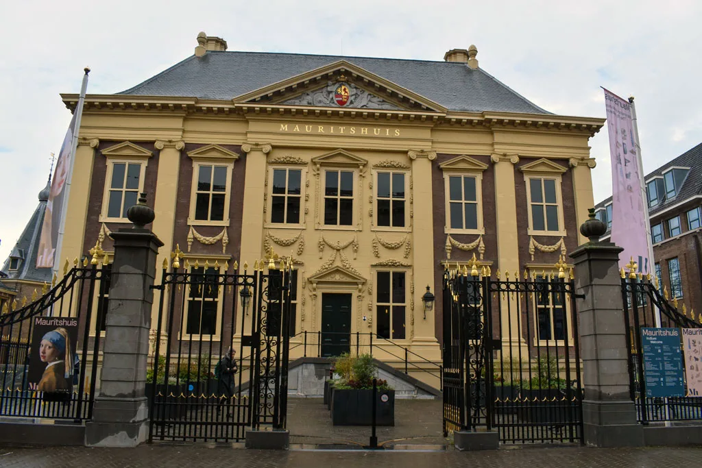 Het statige Mauritshuis werd rond 1670 gebouwd in opdracht van Graaf Johan Maurits van Nassau- Siegen, die een vooraanstaande positie innam in het machtige W.I.C ( West-Indische Compagnie). Het is een voorbeeld van Hollands classicisme en werd een museum in 1822 onder de naam’ Koninklijk Kabinet van Schilderijen Mauritshuis’. Het beheerd een topcollectie van rond de 850 werken van 1400 -1800. Vooral de top van de Hollandse 17e -eeuwse schilderkunst is vertegenwoordigd met Vermeer, Steen, Hals en Rembrandt. Van Rembrandt zijn er ‘ De Anatomische les van Dr. Nicolaes Tulp uit 1632 en ook de ‘ Twee Afrikaanse Mannen’ uit 1661. ‘ Ook het zelfportret van de meester vinden we hier. Het meisje met de Parel ( 1665 ) is de topper van Vermeer maar blijf zeker ook een poosje bij zijn ‘ Zicht op Delft’ en ‘ Diana en haar Nimfen’.
