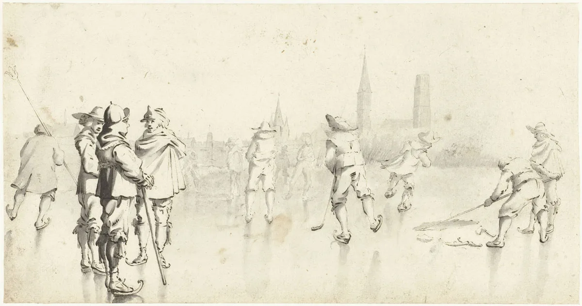 Gerard ter Borch (II), Schaatsers buiten Zwolle, c. 1610-1640 Collectie Rijksmuseum.