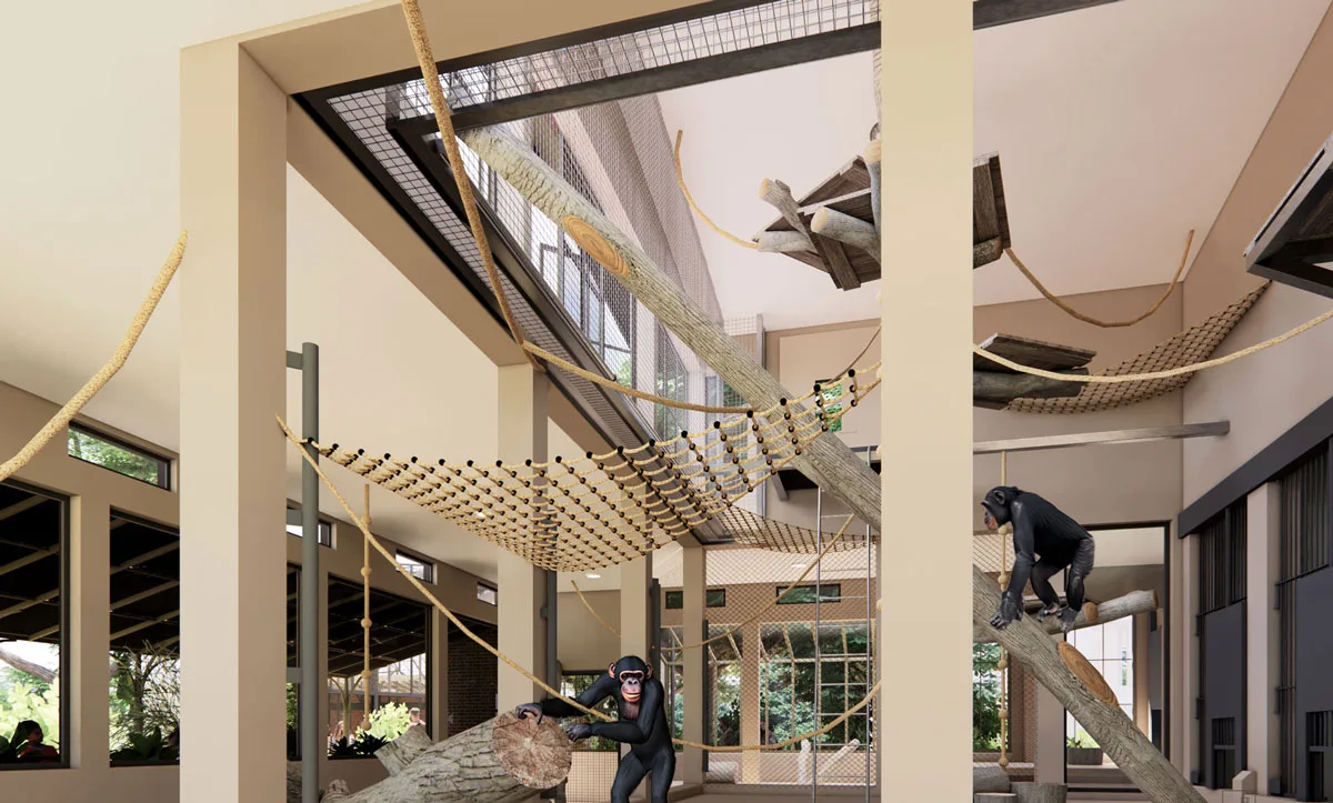 In ARTIS-Park krijgen de chimpansees binnenkort aanzienlijk meer binnenruimte. De Amsterdamse dierentuin is deze maand gestart met de verbouwing van het binnenverblijf, dat ruim drie keer zo groot wordt. Het verblijf groeit van 65,5 naar zo’n 170 vierkante meter.