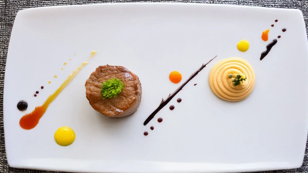 Wat ik kreeg: een groot wit bord. In het midden een streep saus, een stip mousse, drie druppels iets wat waarschijnlijk ooit een jus was en een stukje vlees ter grootte van een postzegel. Abstract. Emotioneel. Verwarrend. Rothko, maar dan medium rare.
