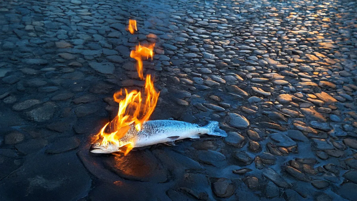 “Wat u hier ziet, is een dialoog tussen vis en vuur. De zalm is slechts licht aangesproken, niet bereid.”