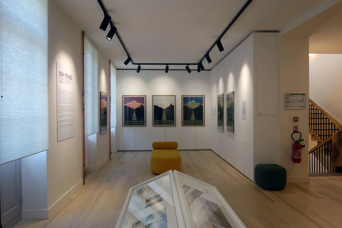 De Église Saint-Gervais-et-Saint-Protais dateert uit de 18de eeuw en is een van de mooiste voorbeelden van Savoyaardse barokkunst. Het hoogaltaar is een kunstwerk op zich met gouden accenten en minutieus houtwerk. Opmerkelijk zijn ook de vele fresco’s en plafondschilderingen van Bijbelse scènes en heiligen in zachte pastelkleuren die contrasteren met het goud. Wat ook opvalt zijn de negen flamboyante glasramen ontworpen door de wereldberoemde Koreaanse Père Kim en Joong. Geïntrigeerd door die bizarre pater neemt Olivia ons nadien mee naar het culturele centrum la Cure waar de toeristische dienst en het cultureel netwerk van Saint Gervais op de bovenste verdieping een speciale tentoonstelling heeft gewijd aan die ‘schilder van het licht‘. Naast zijn wereldberoemde glasramen bewonderen we er ook zijn schilderijen en keramieken. Op een lagere verdieping pikken we een interessante tentoonstelling mee van oude affiches, die toeristen naar Saint-Gervais en zijn legendarische Mont Blanc moesten lokken.