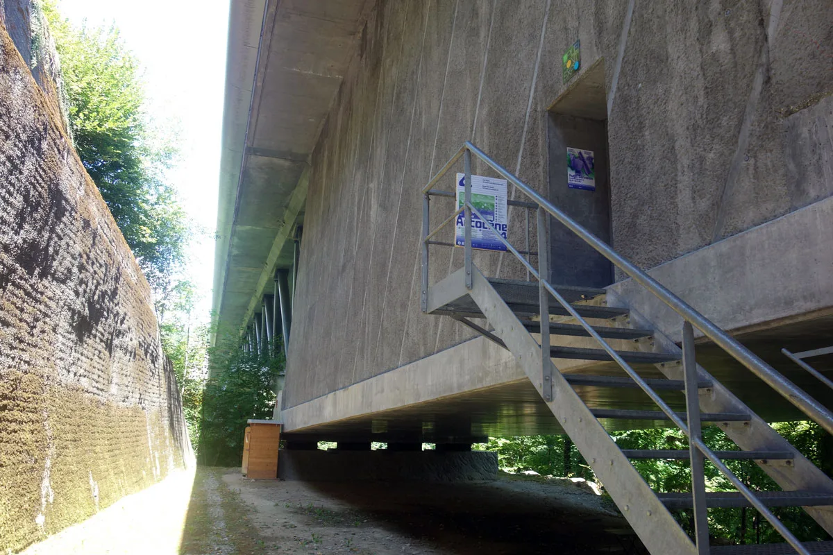 In de Pile Pont Expo onder de brug staat het kunstwerk Environnement 11 een indrukwekkende installatie van de Franse kunstenaar Hugo Servanin. Het maakt deel uit van Artocène, een zomerse biënnale van hedendaagse kunst waarbij twaalf internationale kunstenaars reflecteren over de evolutie van het menselijk lichaam in relatie tot technologie, wetenschap en klimaat.
