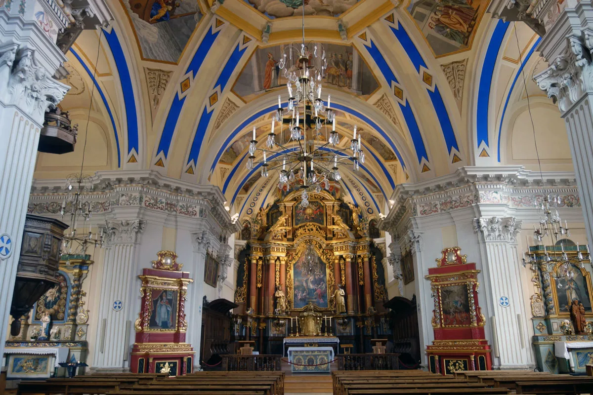 Een barokkerk met flamboyante glasramen van een bizarre pater