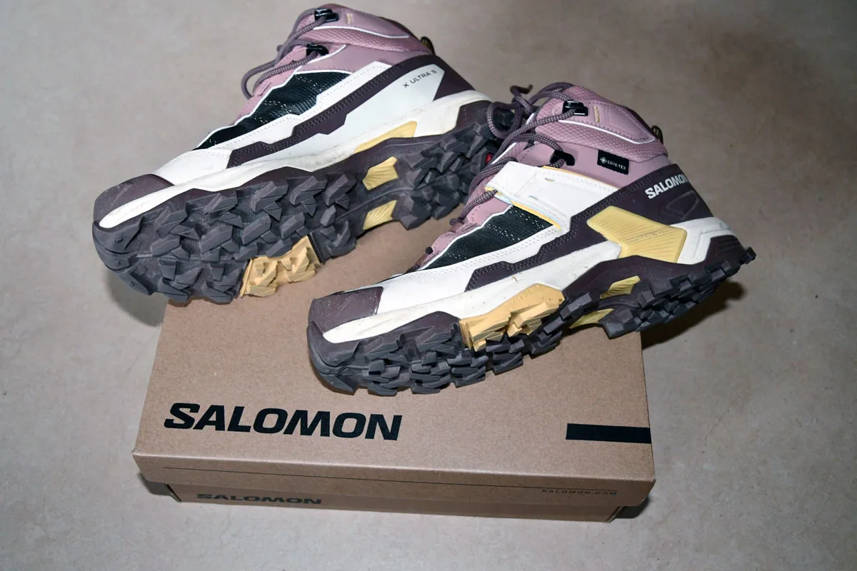 Omdat mijn oude comfortabele lederen bergschoenen aan vernieuwing toe waren en na een paar slechte aankopen van schoenen die in de winkel goed pasten, maar na een langere wandeling toch ergens begonnen te knellen, wou ik niet het zoveelste paar kopen dat in de kast bleef staan. Omwille van handbagage moesten die ook zo licht mogelijk zijn. De bergschoen van het merk Salomon beantwoordt aan al die criteria: ze wegen ongeveer de helft (amper 750gram) van mijn oude bergschoenen, zijn waterdicht, hebben een stevige greep, de voeten bleven fris en ook na uren wandelen begonnen ze op geen enkel moment te knellen. Ik mocht ze uittesten, maar vanaf nu wil ik geen anderen meer.