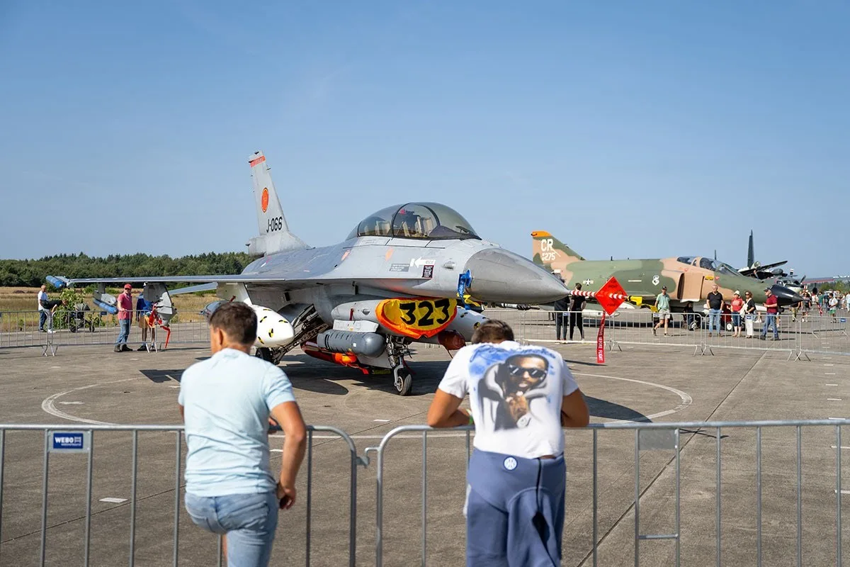 - Historische vliegtuigen zoals de F-16BM ‘Orange Jumper’, de F-4 Phantom II en de Hawker Hunter