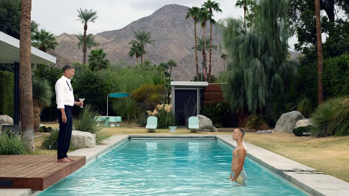 De tentoonstelling serveert zijn oeuvre in zorgvuldig gecomponeerde gangen. Ze begint met de rauwe zwart-witbeelden uit de jaren ’80, waarin Olaf demonstraties voor homorechten vastlegt — fotografische shots met de scherpte van een espresso. Daarna volgen zijn iconische studio-series Royal Blood, Grief, Berlin en Skin Deep: visueel haute couture met een randje ongemak.