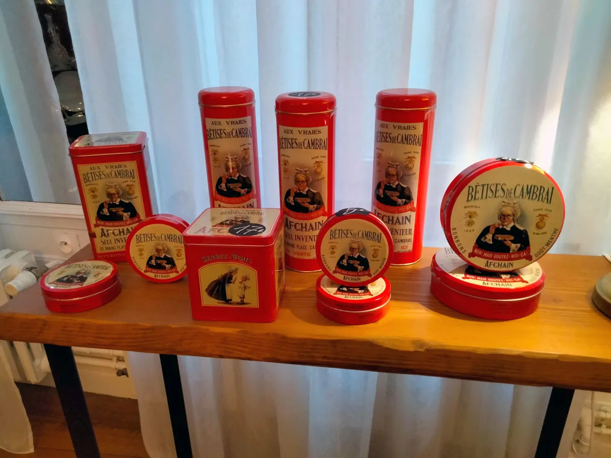Tijd voor een zoeter stukje erfgoed: de Bêtises van Cambrai. Het is de beroemdste lekkernij van de stad, die uitgroeide tot een regionale specialiteit met officiële erkenning als streekproduct. De Bêtises van Cambrai zijn harde suikerbonbons met een dunne karamelstreep. Oorspronkelijk was er alleen de muntsmaak, later kwamen er varianten bij met fruit en andere aroma’s. De Bêtises de Cambrai ontstonden rond 1830 toen een leerjongen per ongeluk suiker karamelliseerde en er munt aroma aan toevoegde. Er blijven slechts twee bedrijven over die het snoepje nog fabriceren. We kiezen voor het ambachtelijke Despinoy dat nog steeds werkt met de machines van de grootvader. Je kan het bedrijf bezoeken. De rondleiding met uitleg en proeverijen duurt ongeveer een uur. Wel op voorhand reserveren.