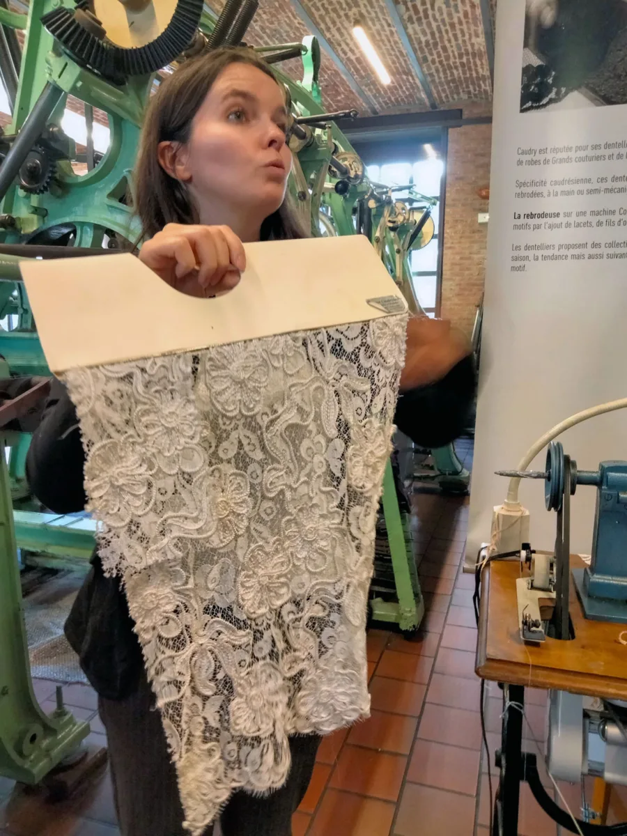 Na de oorlogsgruwelen is een bezoek aan het kantmuseum in Caudry dat schoonheid weeft, een hele verademing. Caudrey ligt op 17 km van Cambrai en is wereldwijd bekend voor voor zijn kantproductie met wereldberoemde modeontwerpers als klant, die de regio een internationale reputatie geven. Zo droeg de prinses van Wales, Kate Middleton, een trouwjurk versiert met kanten mouwen en andere kantdetails afkomstig uit Caudry. Oude weefgetouwen en machines tonen ons hoe complex het proces is om kant te produceren. In de vitrines zien we de resultaten hier van: jurken, sluiers en accessoires van kant. Op de bovenste verdieping is men alles in gereedheid aan het brengen voor een tijdelijke tentoonstelling over kanten bruidskledij, die nog loopt tot 23 augustus 2026.