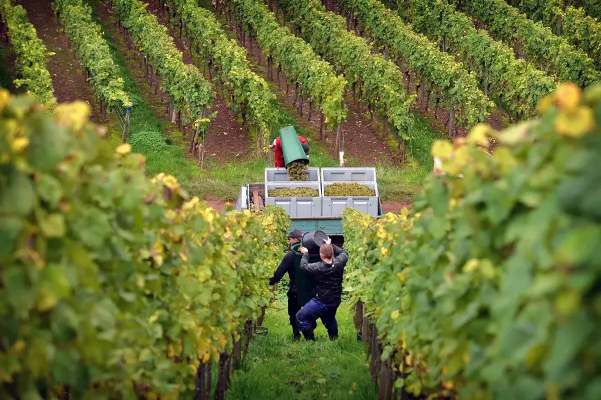 De Duitse wijnboeren hadden dit jaar hun handen vol aan een razendsnelle oogst. De druiven waren eerder rijp dan ooit, en in veel wijngebieden begon en eindigde de pluk weken eerder dan normaal. Toch blijkt de opbrengst na afloop kleiner dan verwacht.