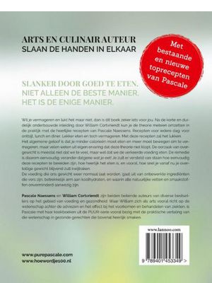 Uitgeverstekst: Arts en Culinair auteur slaan de handen ineen. Slanker door goed te eten. Niet alleen de beste manier, het is de énige manier. Wil je vermageren en lukt het maar niet, dan is dit boek zeker iets voor jou. Na de korte en duidelijk onderbouwde inleiding door William Cortvriendt kun je de theorie meteen omzetten in de praktijk met de heerlijke recepten van Pascale Naessens. Recepten voor iedere dag: voor ontbijt, lunch en diner. Lekker eten en toch vermageren. Met deze recepten zal het lukken. Het algemene geloof is dat je minder calorieën moet eten en meer moet bewegen om te vermageren, maar velen weten uit eigen ervaring dat deze theorie niet klopt. De oorzaak van overgewicht is meestal niet dat we te veel, maar wel dat we de verkeerde voeding eten. De remedie is daarom eenvoudig: verander datgene wat je eet! Je zult er versteld van staan hoe eenvoudig deze recepten te bereiden zijn, hoe heerlijk het eten is, en vooral, hoe snel je vanaf nu je overtollige gewicht blijvend zult kwijtraken. De voeding die ons gewicht weer normaal laat worden, gaat uit van onbewerkte ingrediënten die vers zijn, betrekkelijk arm aan koolhydraten, en waarin alle natuurlijke vetten en smaakstoffen onverminderd aanwezig zijn.