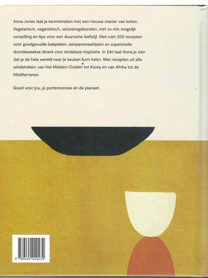 Uitgerderstekst: In Eén laat Anna Jones je zien hoe je gerechten maakt die goed zijn voor jou, je portemonnee en voor de planeet. Het boek is opgedeeld in vier hoofdstukken (Kookpan / Koekenpan / Bakplaat / Snel), met ruim 150 recepten voor goedgevulde bakplaten, eenpansmaaltijden en supersnelle doordeweekse diners. Met gerechten als Perzische noedelsoep; Koreaanse pannenkoeken met wortel en sesam; Afrikaanse pindastoofpot; gebakken dahl met zoete aardappel en tamarinde en gekarameliseerde uientaart met halloumi, munt en citroen. En dat alles met toegankelijke en betaalbare ingrediënten en een manier van eten die goed is voor de planeet.