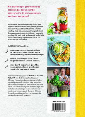 Gefermenteerde rauwe groenten zijn heerlijk krokant, zurig en fris. Ze zitten boordevol probiotica die je natuurlijke weerstand optimaliseren. Marta en Joanna Klejman, Poolse tweelingzussen die in België wonen, ondervonden zelf de nadelen van bewerkte voeding op hun gezondheid. Zodra ze ontdekten hoe belangrijk het darmmicrobioom is voor de gezondheid, beseften ze al gauw hoezeer ze de gefermenteerde voeding uit hun kindertijd in Polen misten. Ze begonnen opnieuw met fermenteren en ervaarden de krachtige gezondheidsvoordelen. Nu blazen ze deze traditionele recepten met passie nieuw leven in en ontwikkelen ze daarnaast nieuwe recepten. In Fermentista delen ze graag hun kennis over de kunst en voordelen van fermenteren. Ze leggen de basisrecepten helder en duidelijk uit, zodat iedereen er direct mee aan de slag kan. Daarnaast presenteren ze heerlijke recepten waarin krokante, frisse groenten verwerkt zijn.